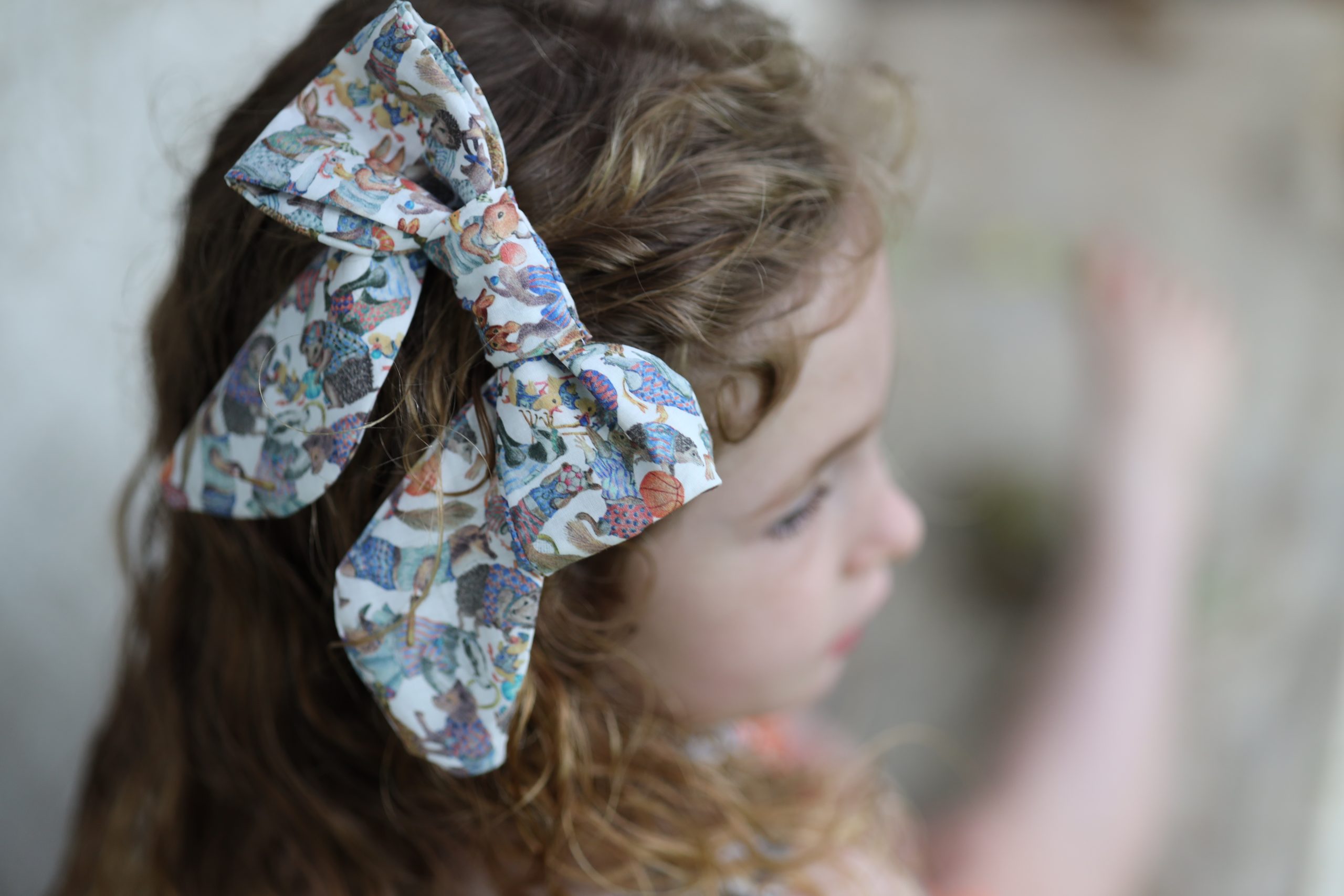 Pair any dress with the perfect hair accessory, made in the same fabric as your dress. The Cinnamon bow is a simple bow with a alligator-clip at the back.