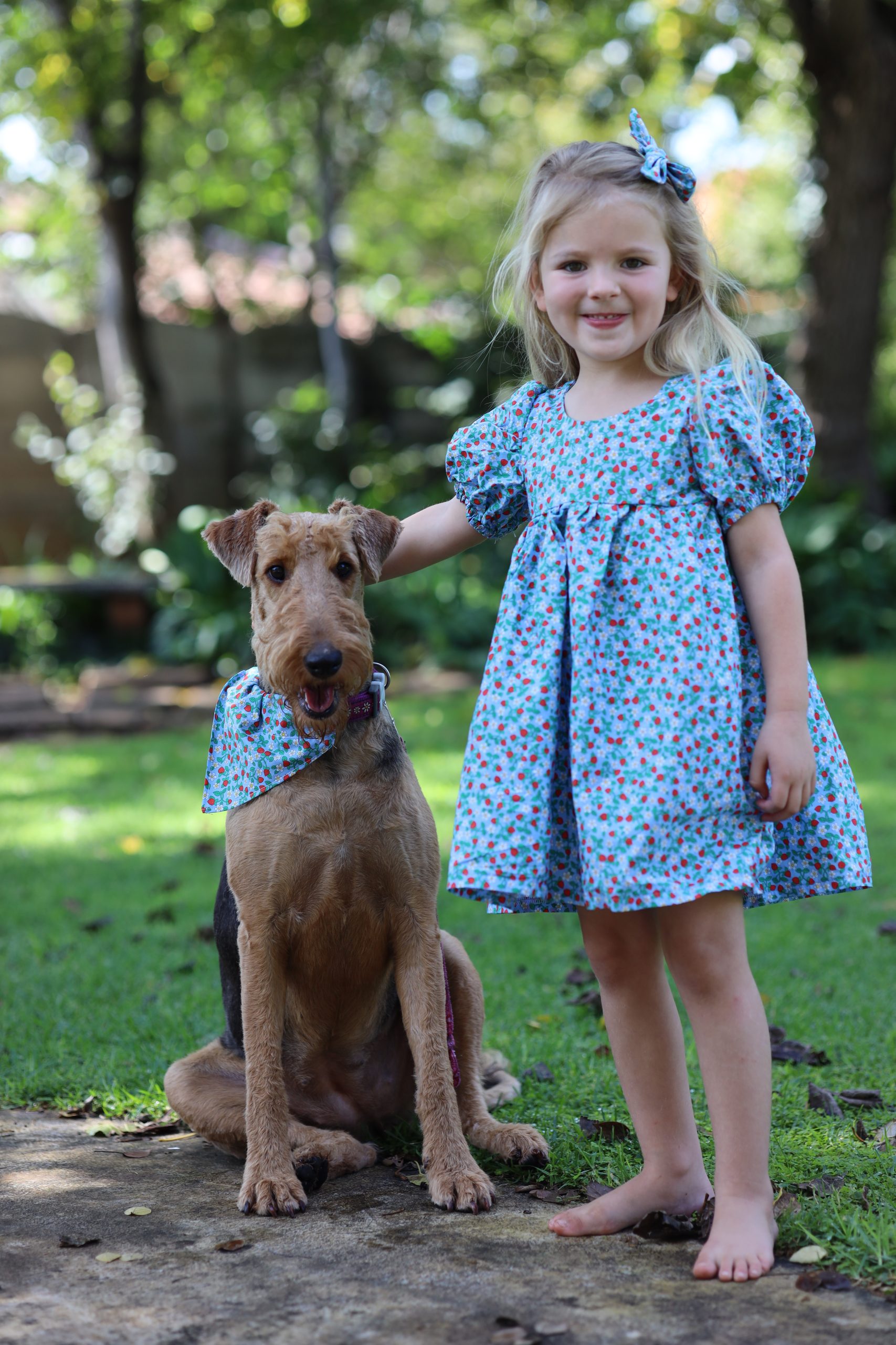 A doggy bandana from the same fabric used for our Once Upon a Thread dresses and accessories to celebrate a special bond with a favourite pet. Slip the bandana through your dog’s collar to prevent a choking hazard.