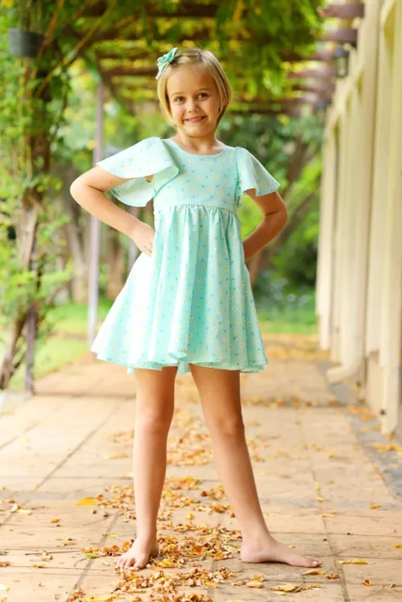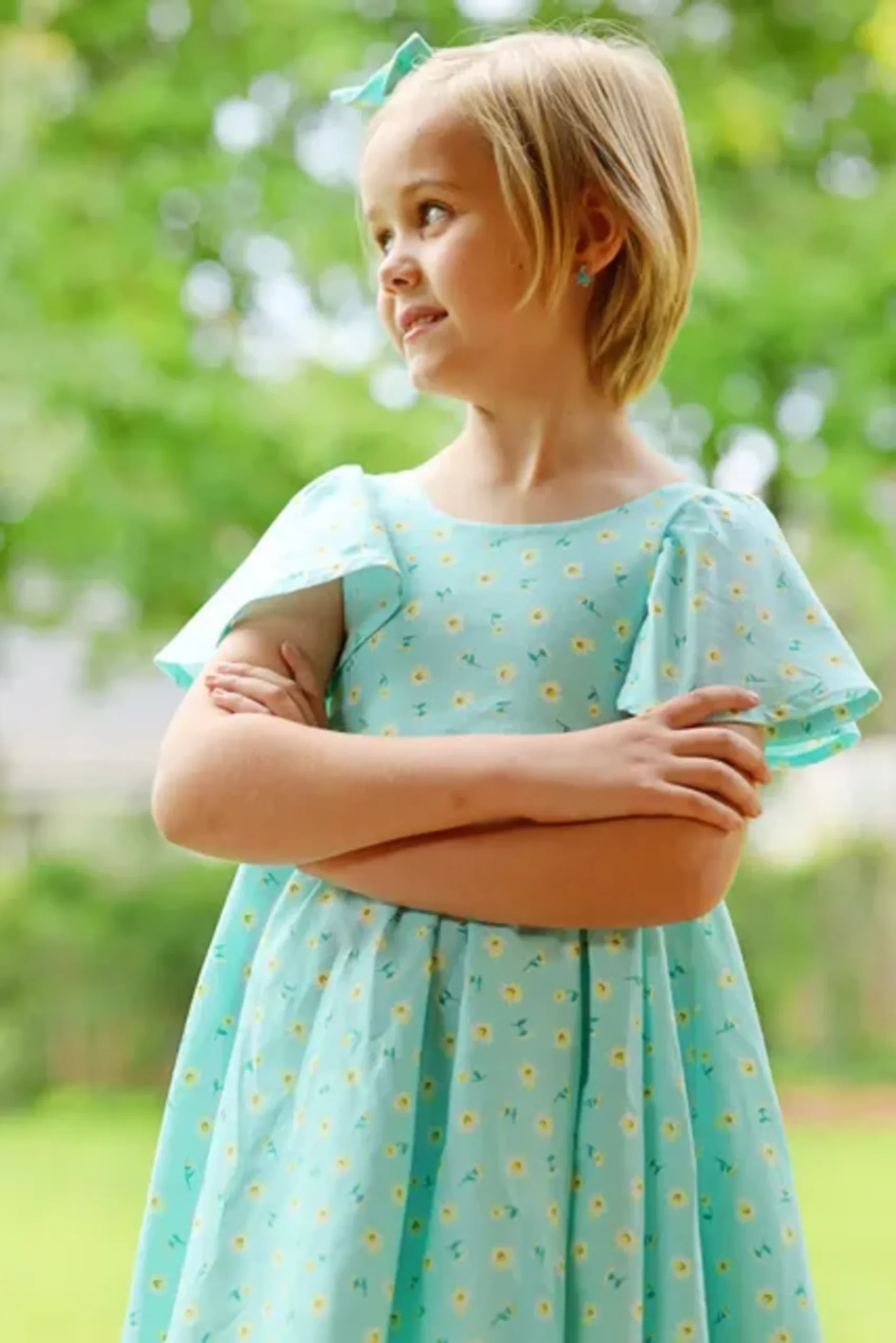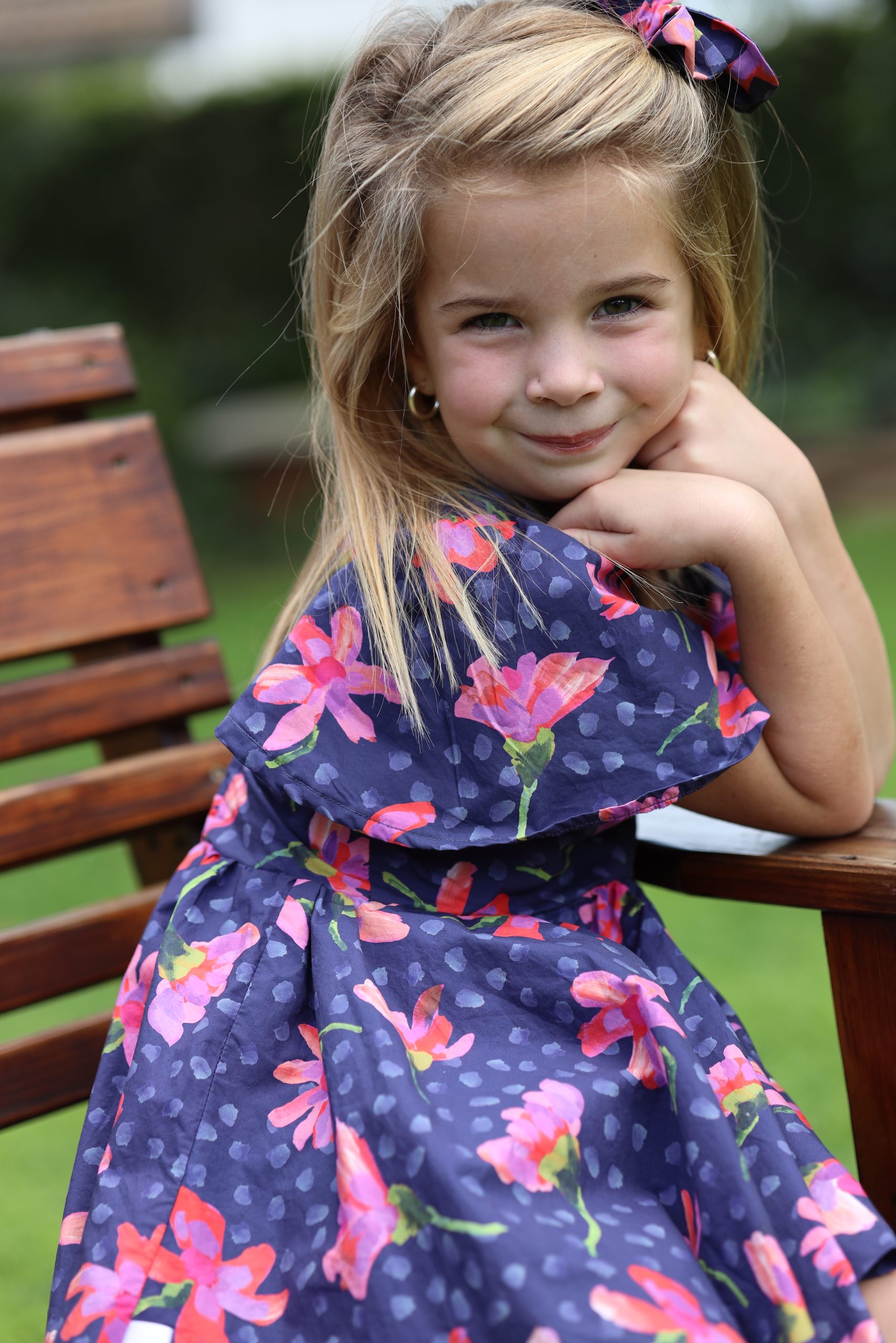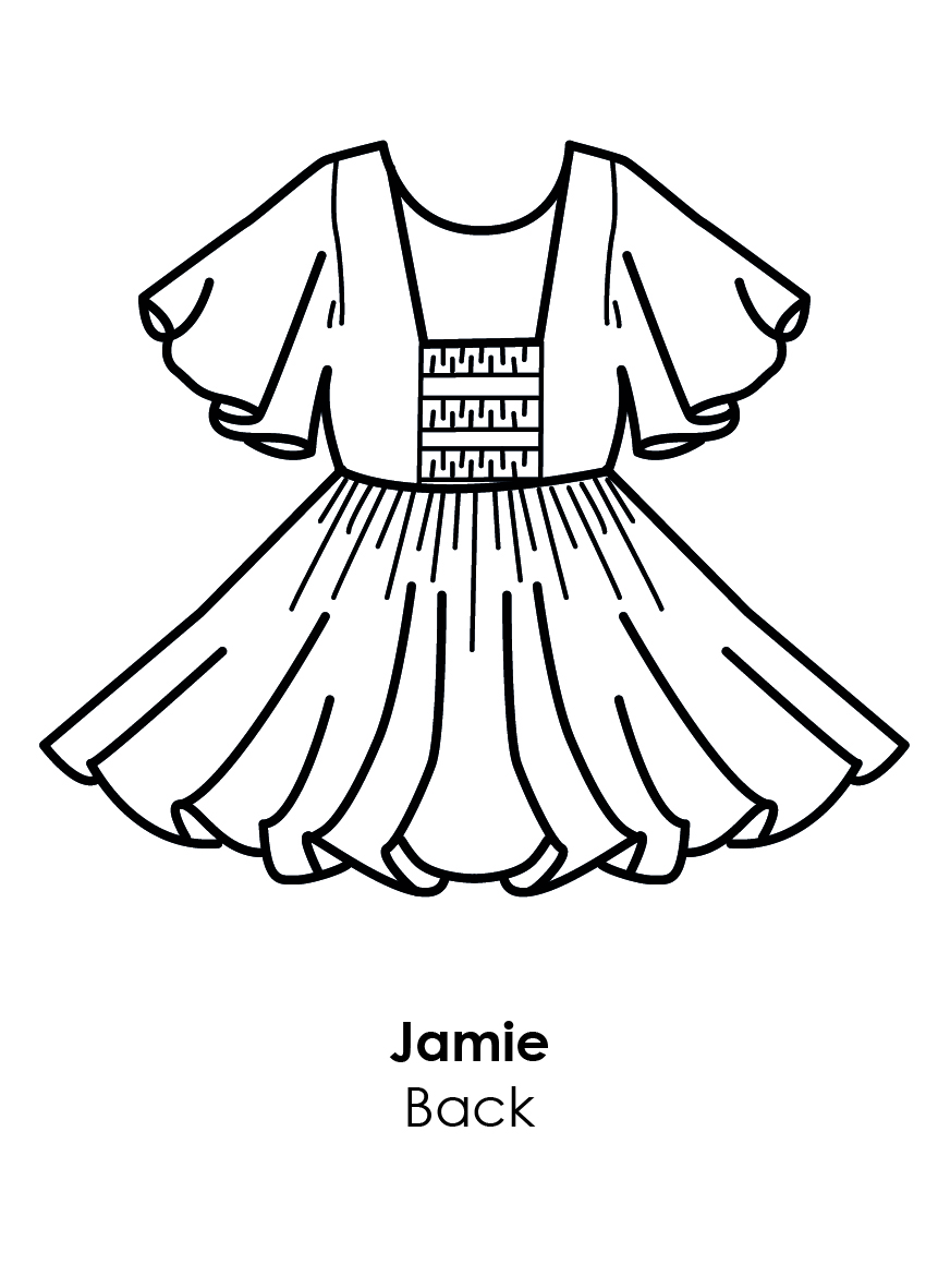 Jamie is a super cute and comfortable dress. It features a fitted bodice with an elasticated back panel, making it easy to slip on and off. The playful flounce sleeves add a whimsical touch, while the delightful mid length gathered circle skirt creates the perfect twirl factor! All Once Upon A Thread dresses has a lined bodice and is from woven (non-stretch) 100% cotton fabric.