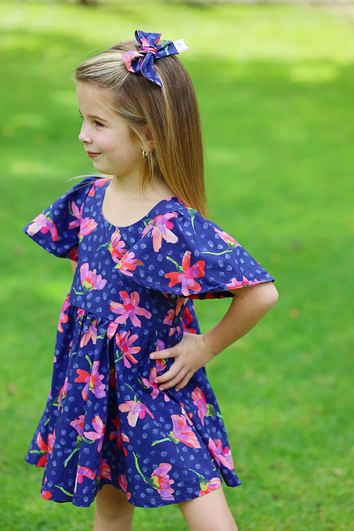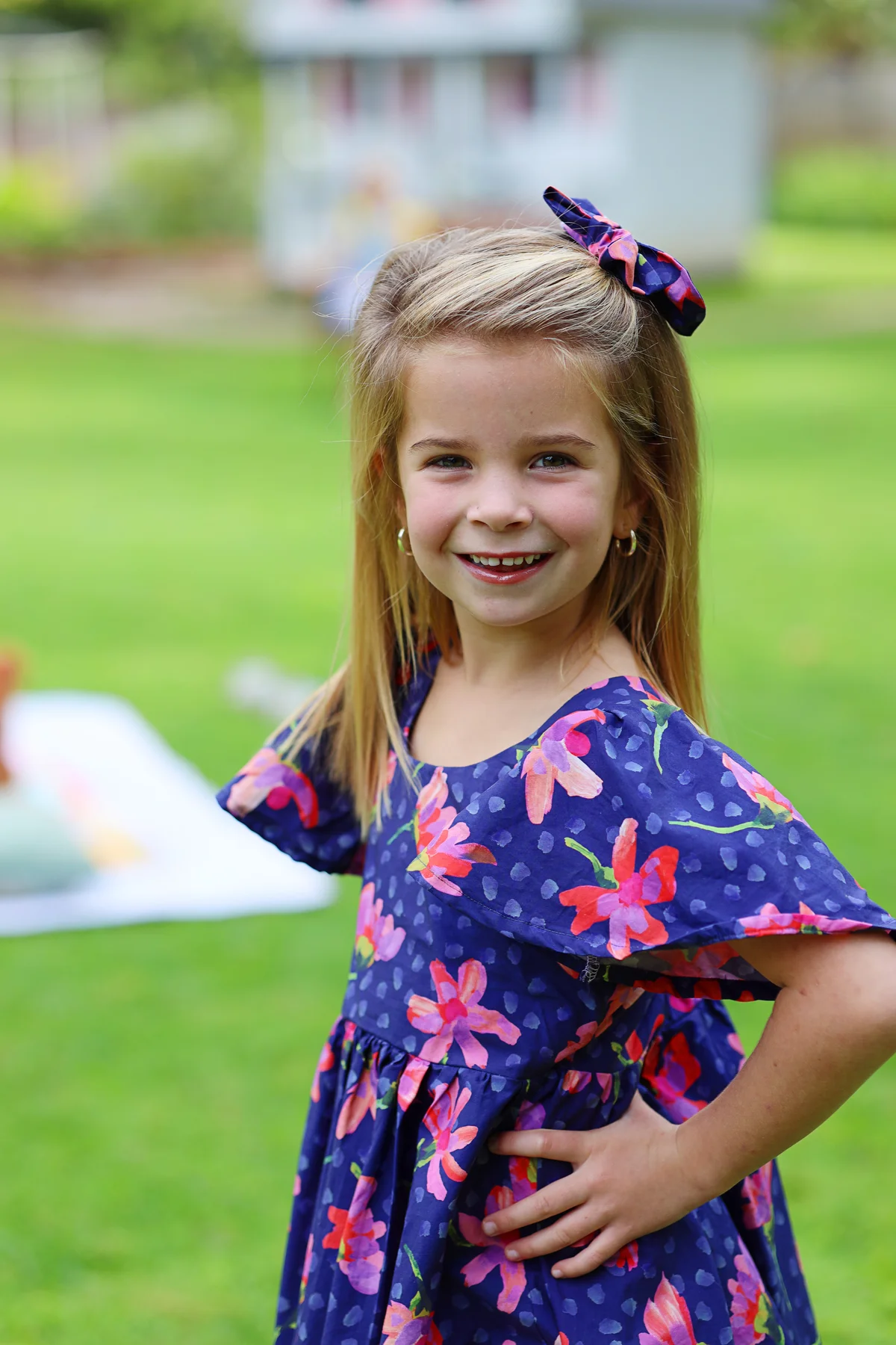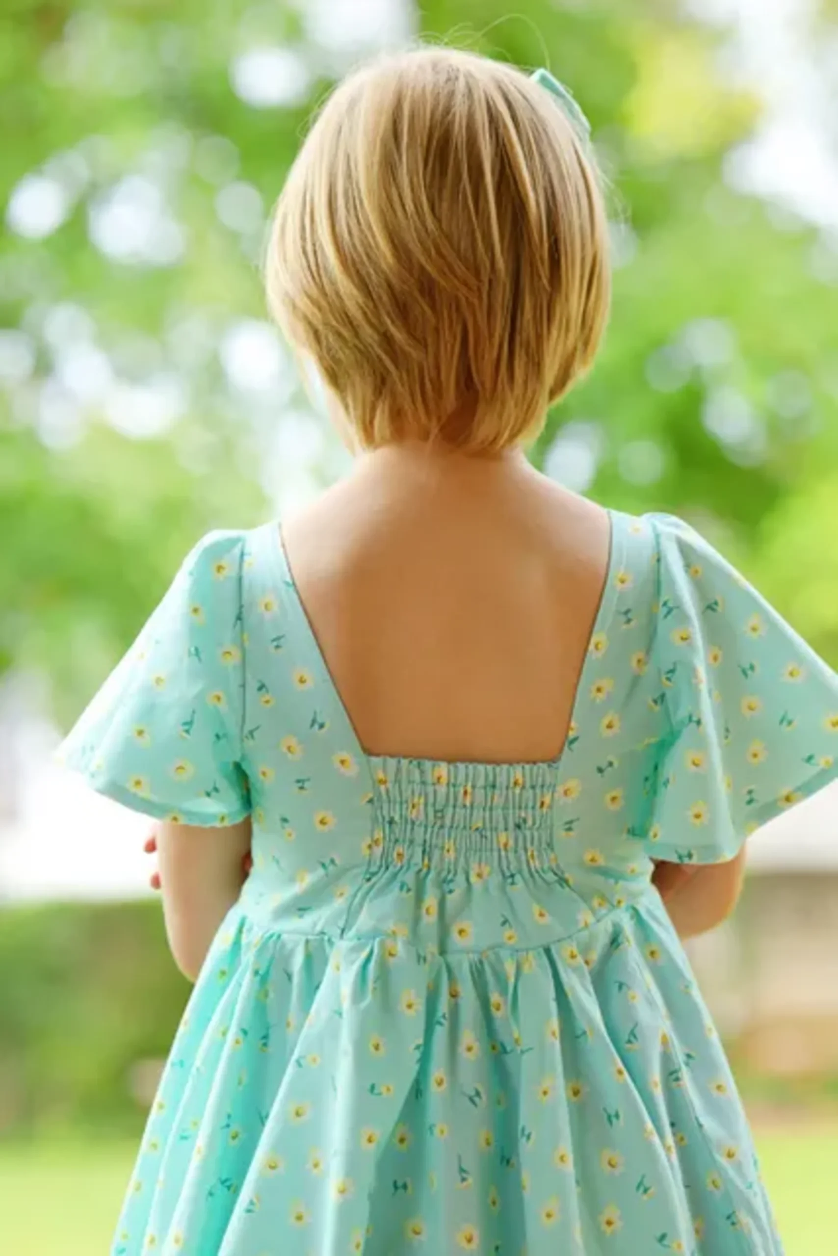 Jamie is a super cute and comfortable dress. It features a fitted bodice with an elasticated back panel, making it easy to slip on and off. The playful flounce sleeves add a whimsical touch, while the delightful mid length gathered circle skirt creates the perfect twirl factor! All Once Upon A Thread dresses has a lined bodice and is from woven (non-stretch) 100% cotton fabric.