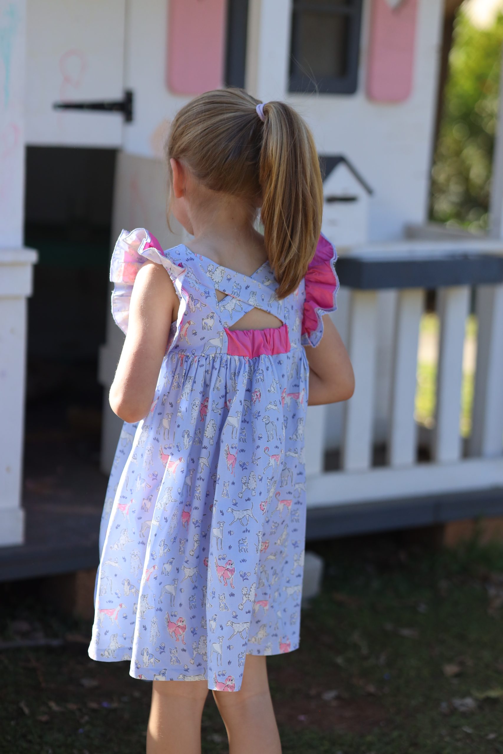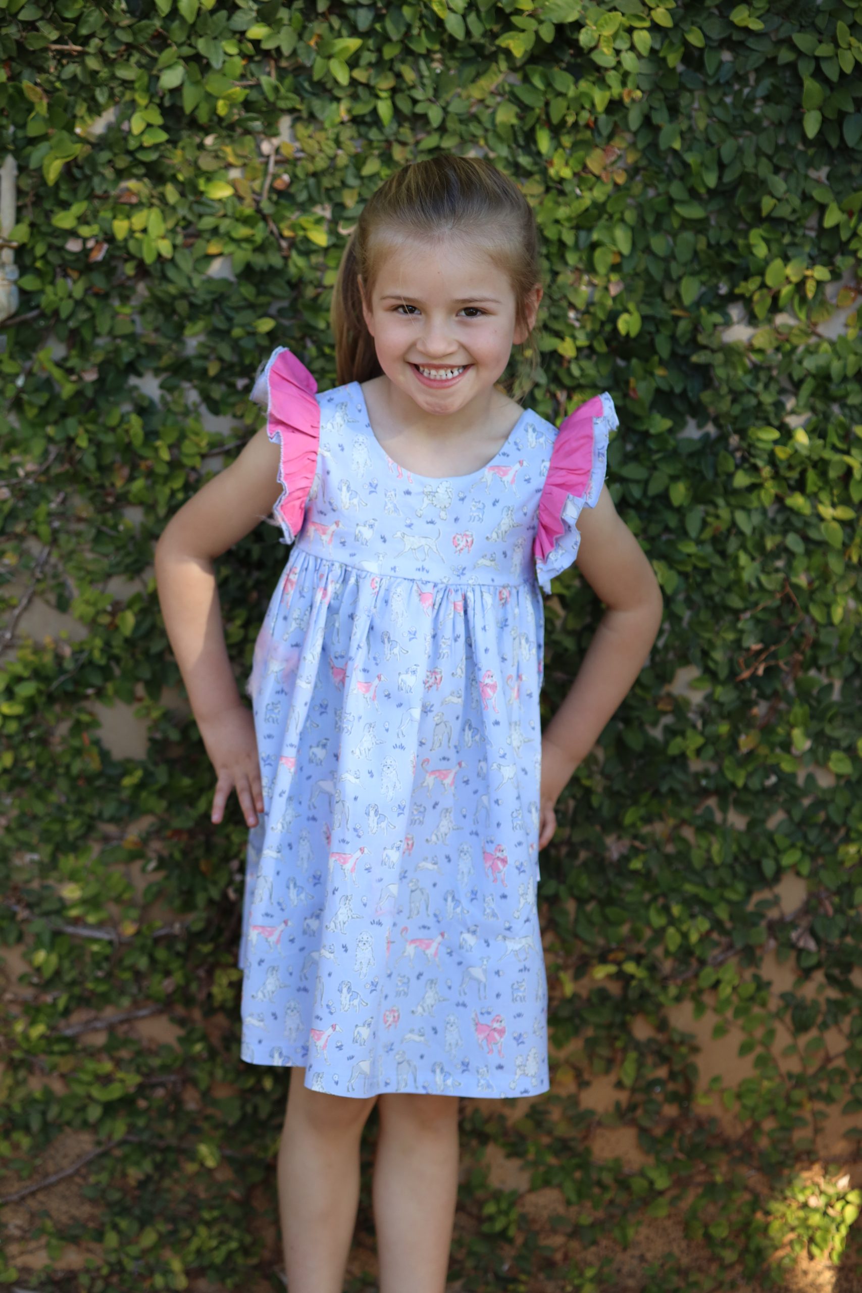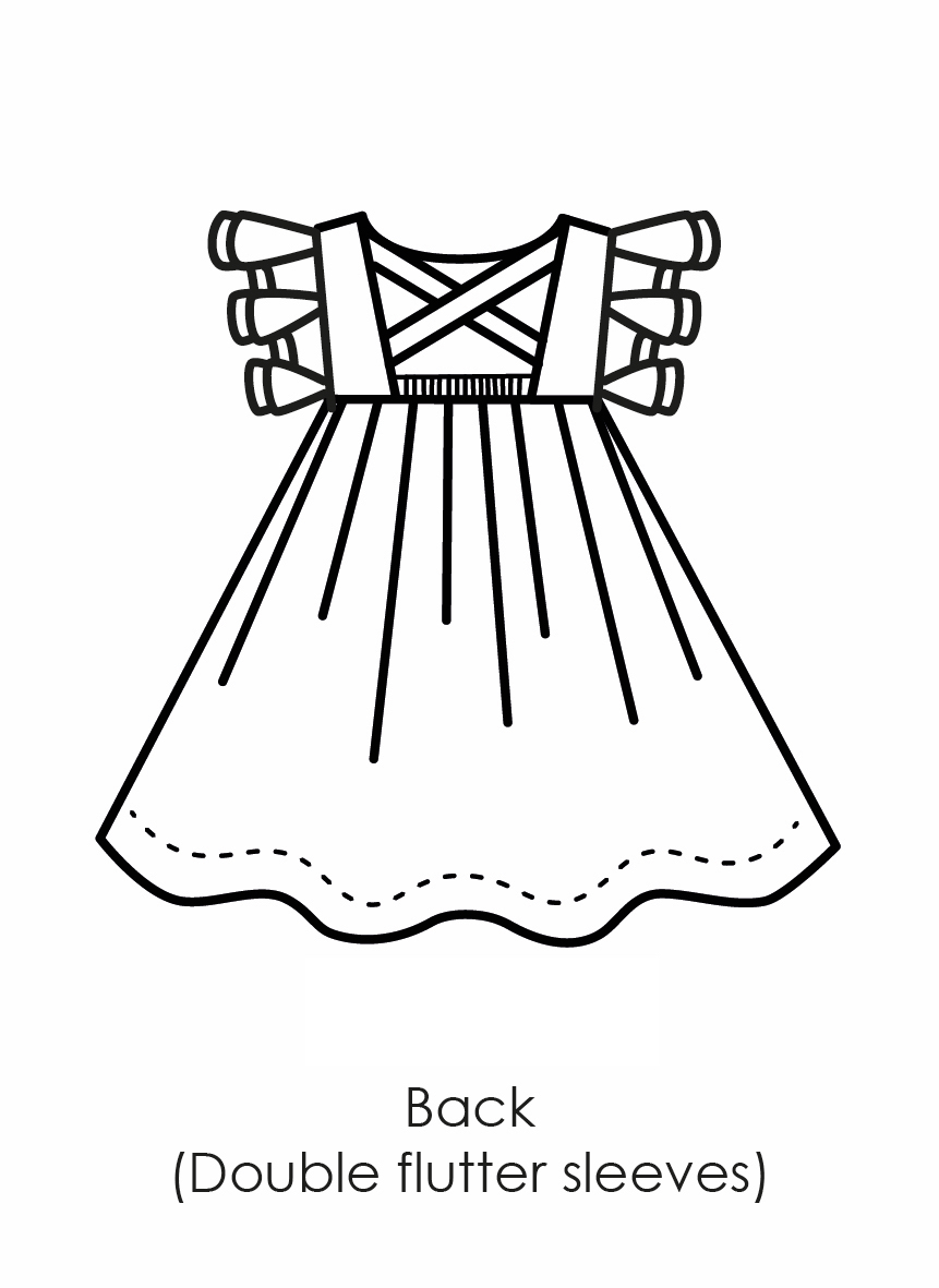 Magda is a baby-doll style dress with a criss-cross back and scooped back. The back panel is elasticated making it easy to slip on or off. Magda has a double flutter sleeve. Have a look at our Chelsea dress for a variation on the same pattern. Select one of our recommended combinations of fabrics, or keep it simple in a single fabric. All Once Upon A Thread dresses has a lined bodice and is from woven (non-stretch) 100% cotton fabric.