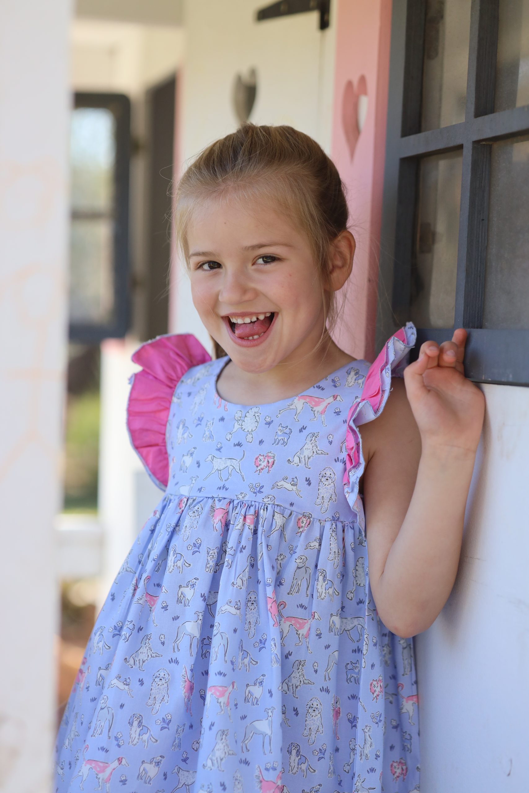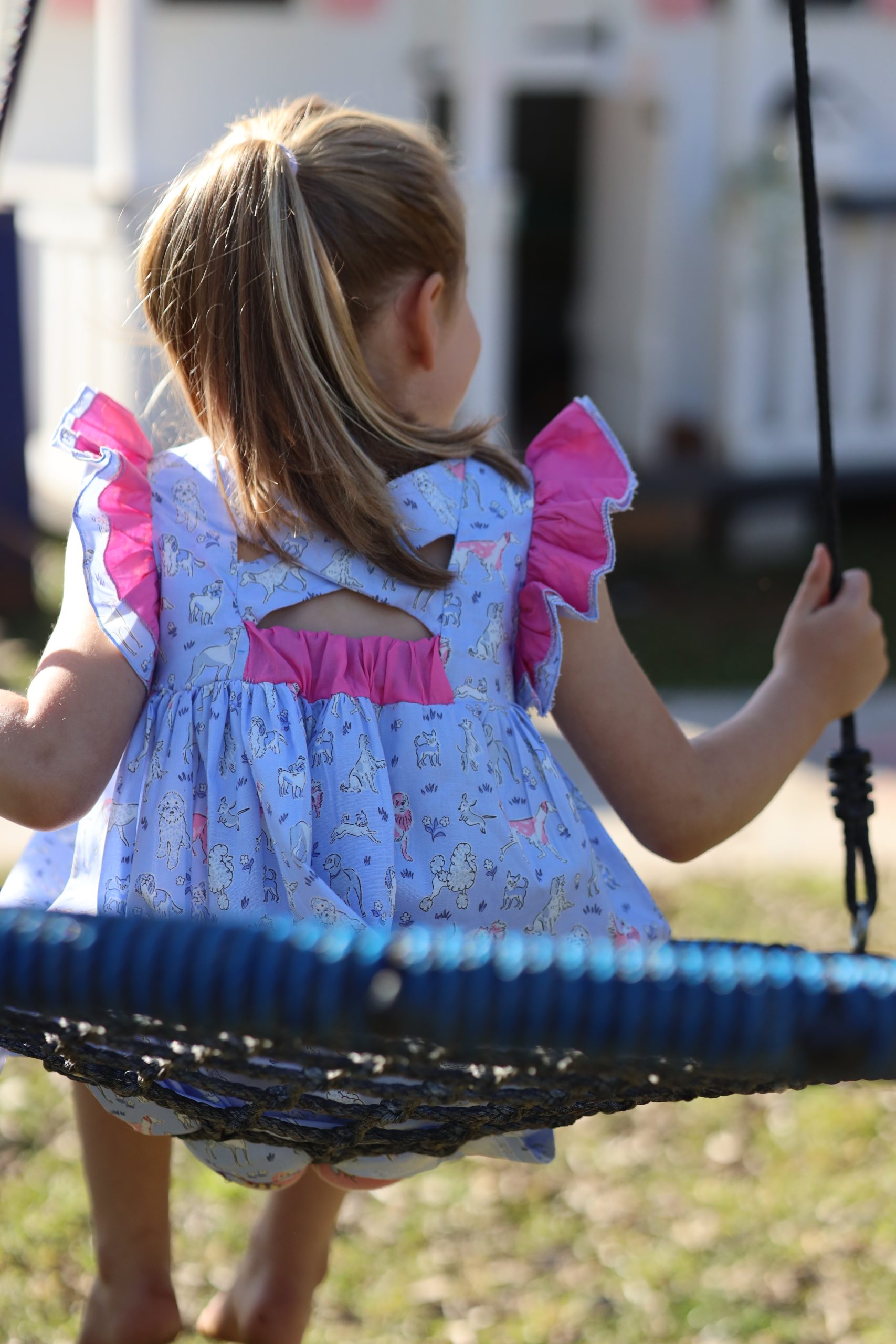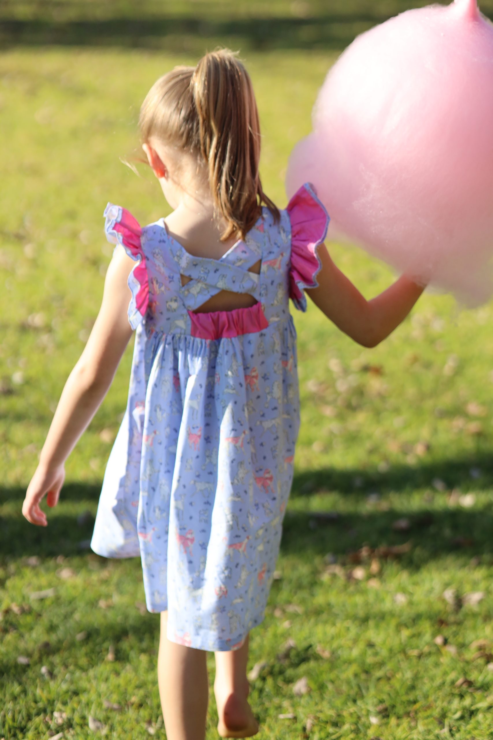 Magda is a baby-doll style dress with a criss-cross back and scooped back. The back panel is elasticated making it easy to slip on or off. Magda has a double flutter sleeve. Have a look at our Chelsea dress for a variation on the same pattern. Select one of our recommended combinations of fabrics, or keep it simple in a single fabric. All Once Upon A Thread dresses has a lined bodice and is from woven (non-stretch) 100% cotton fabric.