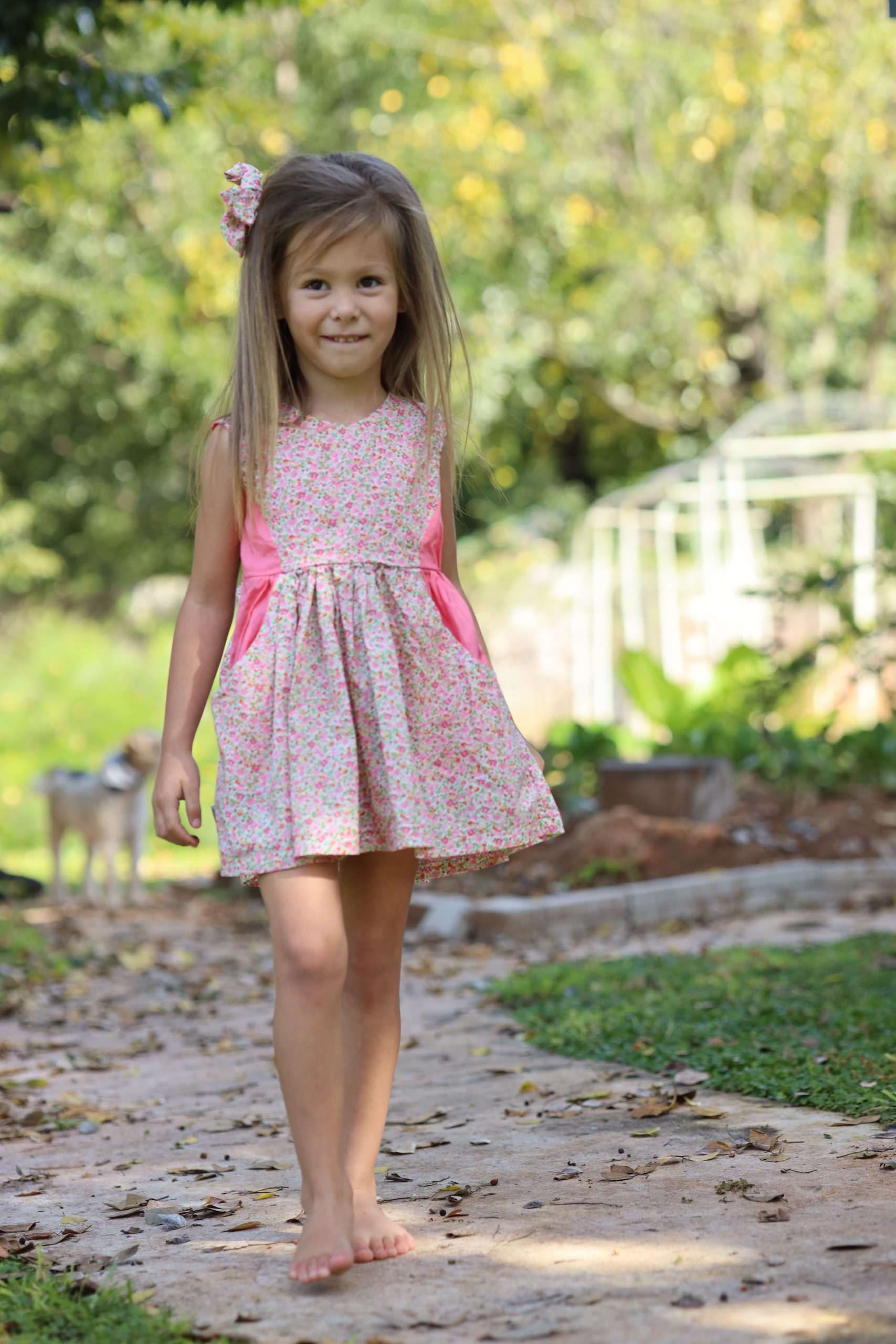 The cutest dress on the block with extra-large pockets and a short vintage length full skirt. Mienkie has snaps at the back for easy fastening. The bodice is split, so choose a patterned fabric as your base and combine with a plain colour, or choose it the other way around. Mienkie is without a collar, but have a look at our Amy, Lara and Annemarie dresses for variations on this pattern. All Once Upon A Thread dresses has a lined bodice and is from woven (non-stretch) 100% cotton fabric.